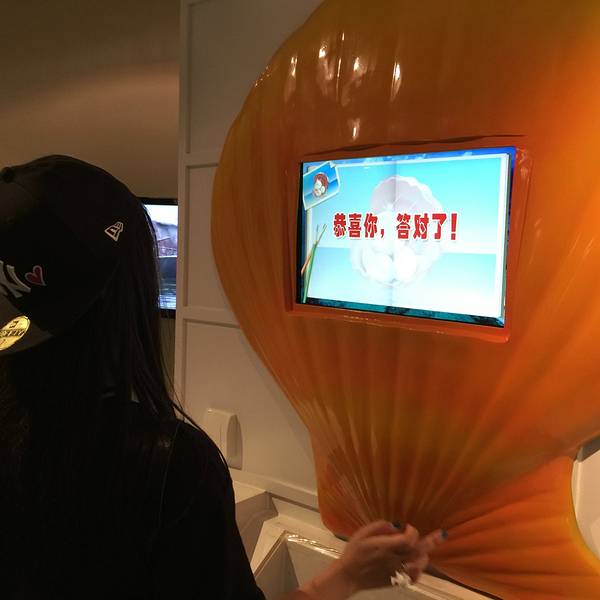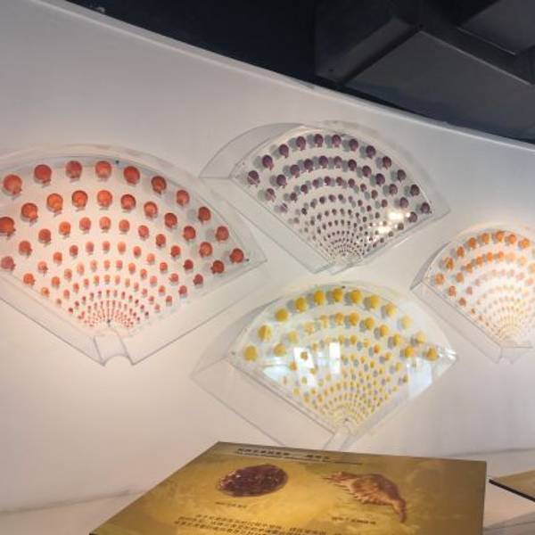展陈手段好丰富,不厌其烦地在各处设置各种不同形式的解说,学到很多知识。巨大的章鱼、乌贼、贝壳模型也很多,大手笔。展示的珍珠首饰都是大颗大颗的海珠,价格不菲。每一种贝壳摆放都是自小到大、颜色自浅到深依次陈列,简直出自处女座之手。还有走廊的电脑显示菜谱、知识问答,真是太极致了。