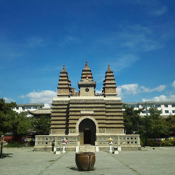 五塔寺位于呼和浩特市旧城东南部,原名金刚座舍利宝塔,因塔座上有五座方形舍利塔,故名为五塔寺五塔寺位于呼和浩特市旧城东南部,原名金刚座舍利宝塔,因塔座上有五座方形舍利塔,故名为五塔寺。 不知什么原因我们来的这天没开门。
