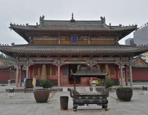 呼和浩特五塔寺:寺庙不大,但小巧而精致,因主塔基座上有五个方形舍利塔,故名五塔寺呼和浩特五塔寺:寺庙不大,但小巧而精致,因主塔基座上有五个方形舍利塔,故名五塔寺。宝塔由塔基、金刚座、塔顶三部分组成,塔身刻有经文,并镶嵌鎏金小佛,古朴精美,值得一看。