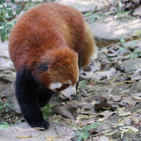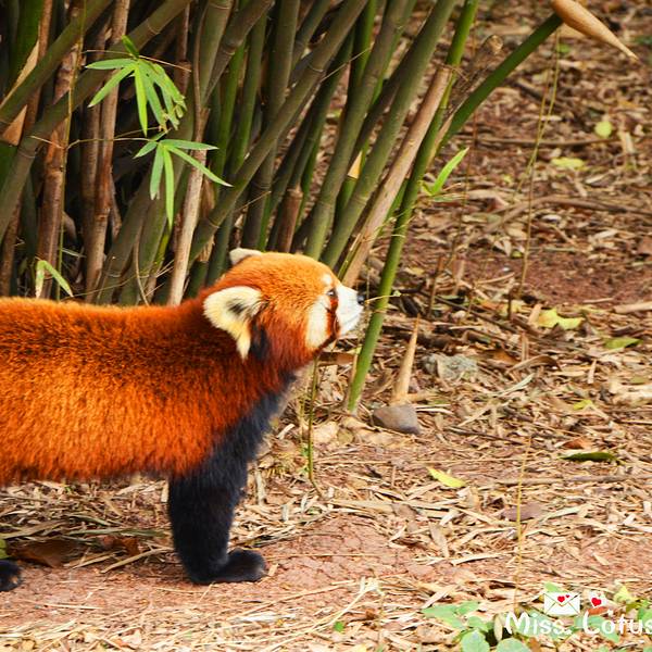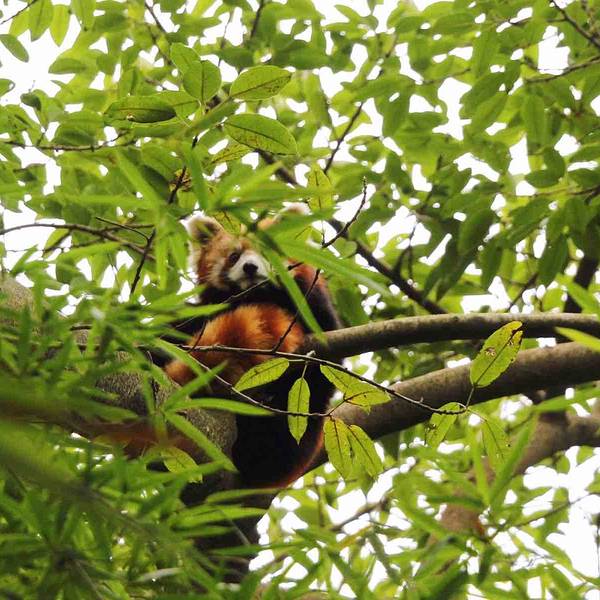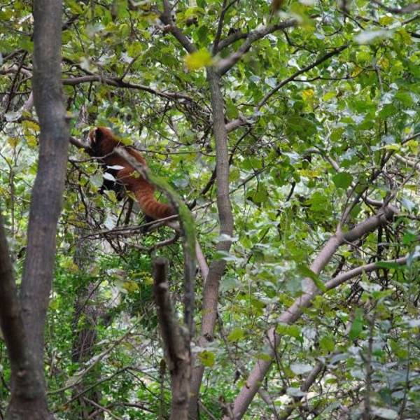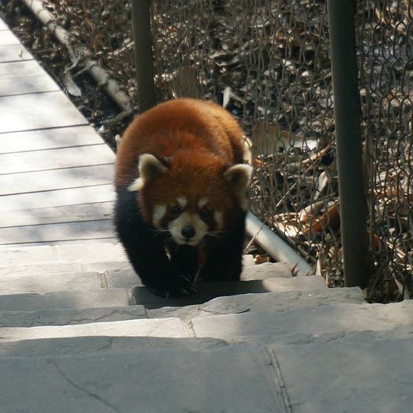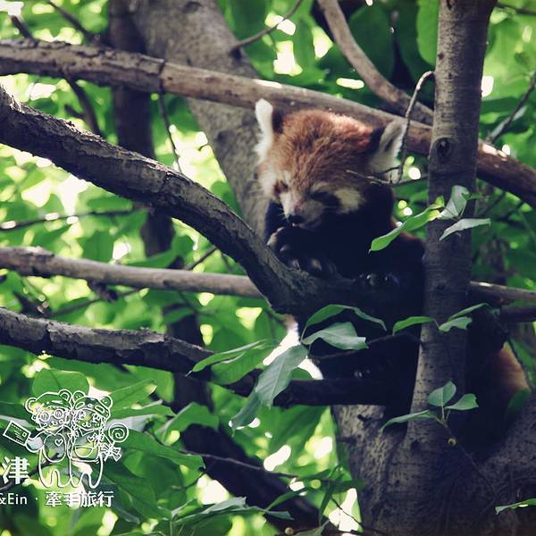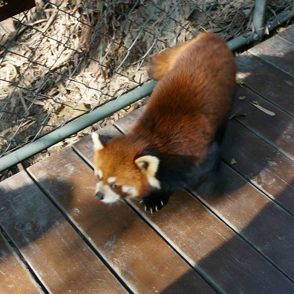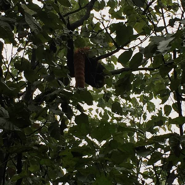 小熊猫是大熊猫的伴生动物,但是并没有啥血缘,跟浣熊长的有点像,但是更可爱哟。小熊猫也超爱吃竹子🎋,也超爱爬树🌲,我们去的时候就看到一只小熊猫分分钟上树(图4⃣)。