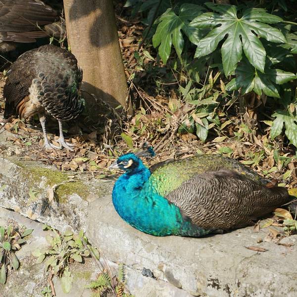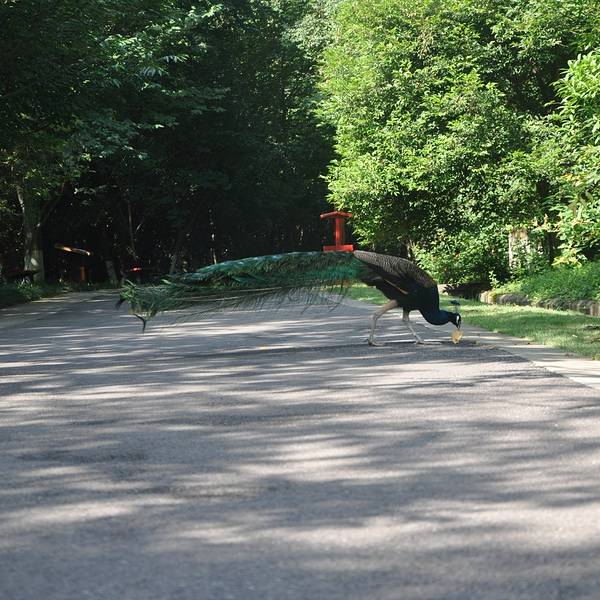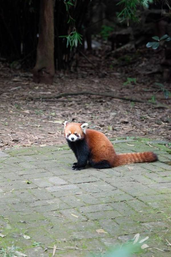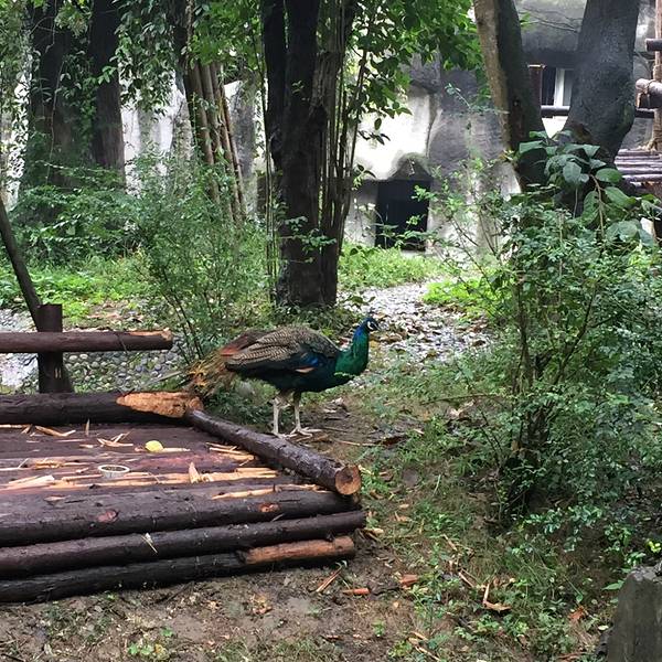 除了熊猫之外,在园区里还可以见到野生放养的 小熊猫和蓝孔雀。