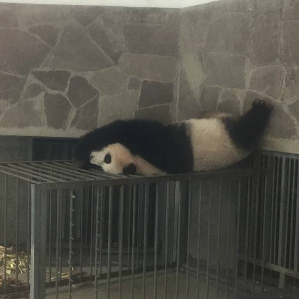 可能是下午的缘故,这几只大熊猫都懒懒的。