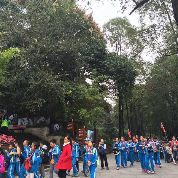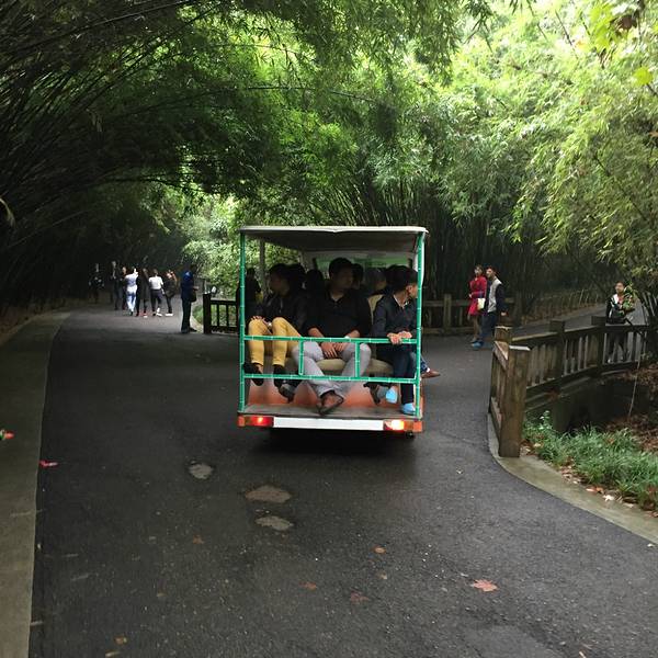 虽然景区直通车门票贵了将近一半,但是路上比较舒服,不用等公交找车站,而且保证每个人都有座位,景点又有导游讲解。熊猫基地公园还挺大,但是景点不是很多,我们需要先上山,所以坐起了电瓶车,导游会建议大家都坐,如果不坐也可以,就是听不到讲解啦。