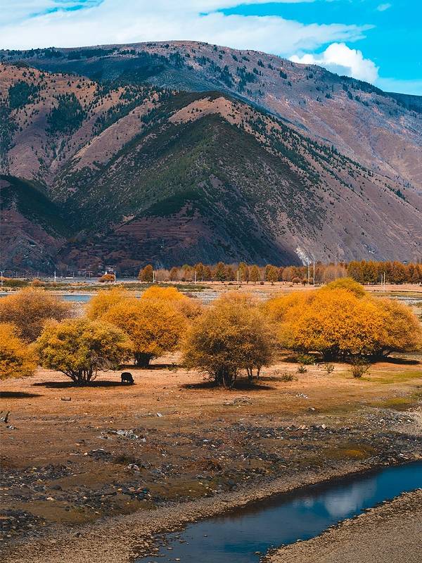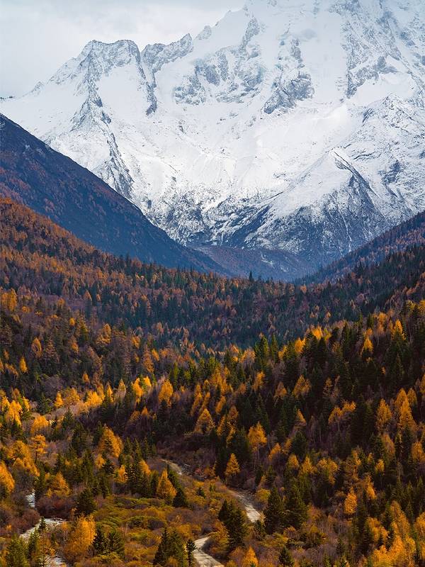 全程柏油马路,车辆可以直接到达,远处是雅拉雪山近处是层林尽染。这是独属于川西的秋色。