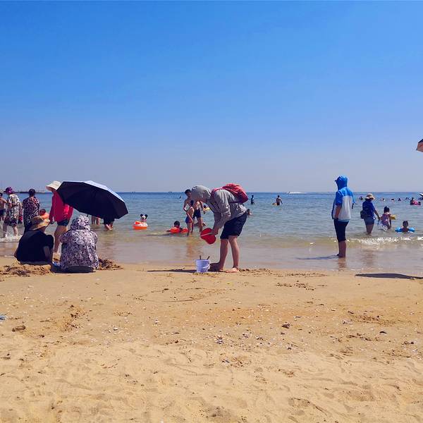 从网上找到养马岛上最有名的就是一家名为鑫阳烧烤饭店的餐厅,从网上查到离海滨浴场也不算太远,我们...- 中了抖音的毒,这次来到烟台也特意去养马岛泡了一天。养马岛在牟平区,我们从市区打车过去开了半个多小时。小朋友只喜欢玩海水、沙滩,所以我们直奔海滨浴场。可能是抖音效果太好了,这里的游客还真不少。