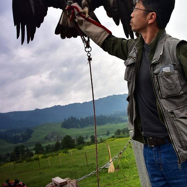 这鹰长得帅气!引得游客纷纷驻足,一听说10块钱一次,不贵,我们几个都涌上去了合影。
