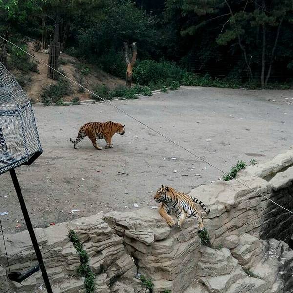 然后重点来了,是猛兽区,顺着一条路走,旁边就是铁丝网围起来的,其实动物们很自由,反倒是游客被拘禁起来了一样。转到头可以缆车到一期工程,转完的是二期。一期情况不太了解,好像多了些游乐设施。