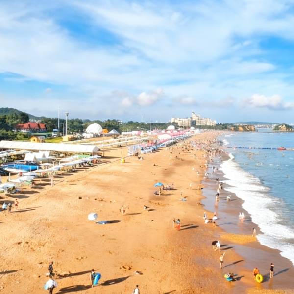 金沙滩风景区位于辽宁省大连市西岗区滨海路53号,这里的环境得天独厚,风景优美,海水碧透,水质优良,沙滩沙质也很好,是融吃住购浴于一身的昼夜海水浴场,有风味小吃,有民宿,有涂鸦墙,还能看见孔雀呢!落潮时还有很多人在这里赶海,体验收获的乐趣。金沙滩的沙色金黄,沙质松软,不含杂质,赤脚走在沙滩上,很舒服,适合孩子嬉戏,情侣漫步。