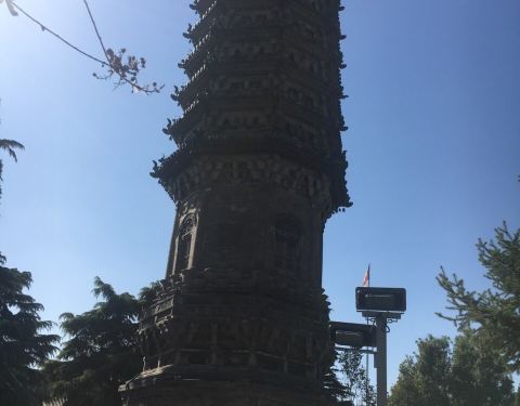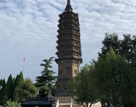 这座宝塔体量不大,是一座建于唐代,八角、九级、实心密檐宝塔,造型优美,砖雕精致,亭亭玉立,被建筑大师梁思成誉为“塔中上品”。