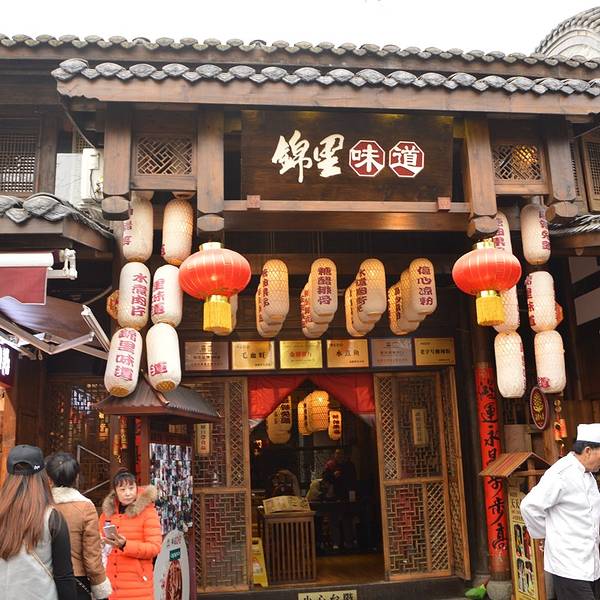 锦里古街是成都知名的商业步行街,由一大片清末建筑风格的仿古建筑组成,拥有众多民居、酒吧、餐饮名店,有名的景点武侯祠也在其中。 锦里古街与武侯祠一墙之隔,游客一般会在游玩武侯祠后,来此逛一逛,这里洋溢着成都特有的喧嚣和随意。古街里青瓦错落有致,青石板路蜿蜒前行,街道两旁店铺里摆着许多颇具当地特色的物品,如手工的皮包、五颜六色的布灯笼等,还有众多老成都手艺人制作吹糖画、捏面人。此外,这里各色美食也会令你垂涎三尺,有张飞牛肉、豆花、牛肉焦饼、钵钵鸡等,各具风味。 锦里古街在夜幕来临时会亮起大红灯笼,这时酒吧、茶馆热闹非凡。其中比较有名的是莲花府邸酒吧,每晚都有当地歌手来此驻唱,逛累了,可以在这里小憩。