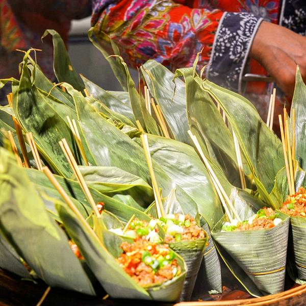 推荐理由:叶儿粑又叫艾馍,原窗@农家溯明节的传统食品。1940年,新都天斋小食店将艾馍精心改制,更名为叶儿粑。到了四川,只要是有小吃,肯定有它。制作叶儿粑选料考究,工艺精细,具有色绿形美、细软爽口的特点。用糯米粉面包麻茸甜馅心或鲜肉咸馅心,外裹鲜橘子叶,置旺火蒸。特色是清香滋润,醇甜爽口,荷香味浓,菜分两味,咸鲜味美。