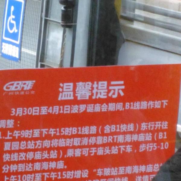 实用 当初是为了参加羊城通公司为了南海波罗诞和同步发行的羊城通公交卡首发式来南海神庙参观的,“海不扬...当初是为了参加羊城通公司为了南海波罗诞和同步发行的羊城通公交卡首发式来南海神庙参观的,“海不扬波”的寓意很不错。离广州市区还蛮远的!在天河体育中心BRT有直达的快速公交,也因为南海波罗诞而多开了BRT班...当初是为了参加羊城通公司为了南海波罗诞和同步发行的羊城通公交卡首发式来南海神庙参观的,“海不扬波”的寓意很不错。离广州市区还蛮远的!在天河体育中心BRT有直达的快速公交,也因为南海波罗诞而多开了BRT班次。下了BRT就是南海神庙门口的集市了。当然也可以做地铁转公交过来,这样会舒服很多。南海神庙附近的自由集市。气氛很不错!在BRT旁的告示牌。琳琅满目的小玩意。入口,就在珠江边上。景区示意图。很喜欢这个壁画,做的很有美感!这个小山上有个凉亭,可以纳凉看到珠江。关帝庙的香火很旺,很多善男信女。景区里的购物街。景区外面的粤剧宣传栏。南海菠萝诞期间的节目安排。观看节目表演。节日的气氛特别好!人潮络绎不绝。供游人歇息的地方。剪纸。南海神庙后面的草地还是蛮清静的。粤绣,木棉花,广州的市花。可以买走的,价格不便宜,手工制作。各种图案的粤绣。很多未婚男女都是来这里求姻缘的,很多来了几年,都没找到合适的,但还是坚持来每年,也许这是地方特色,也许是人需要一种信念,在浮躁的世界里。无论结果如何,坚定走下去就对了。