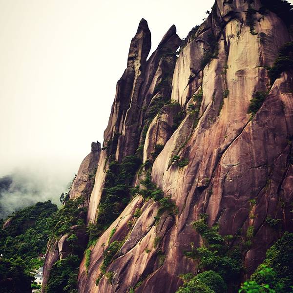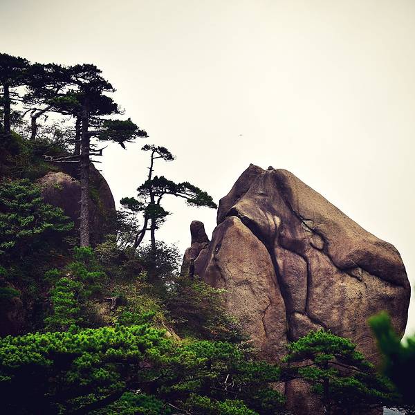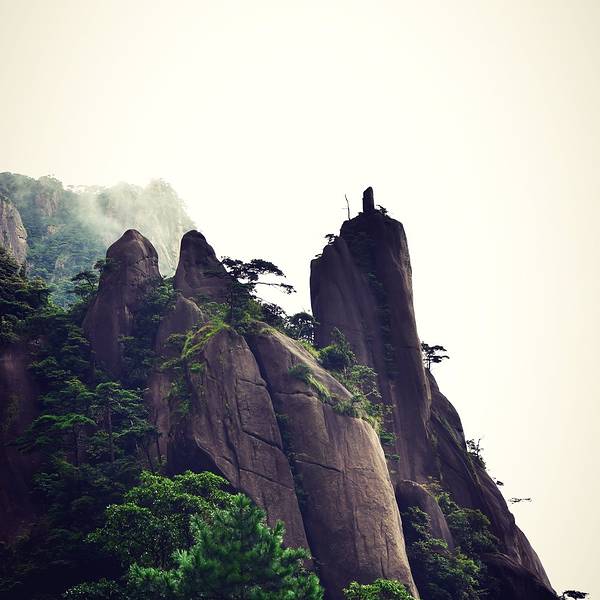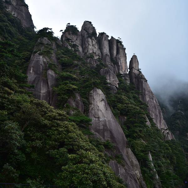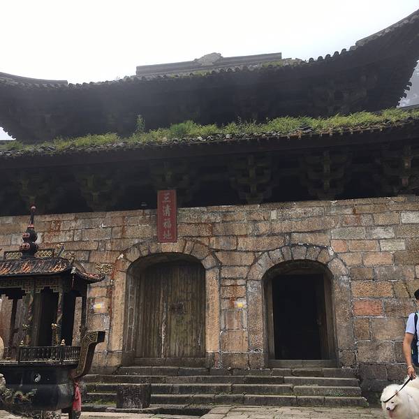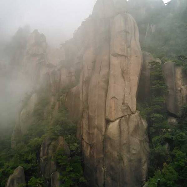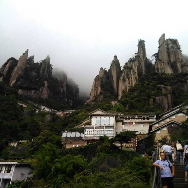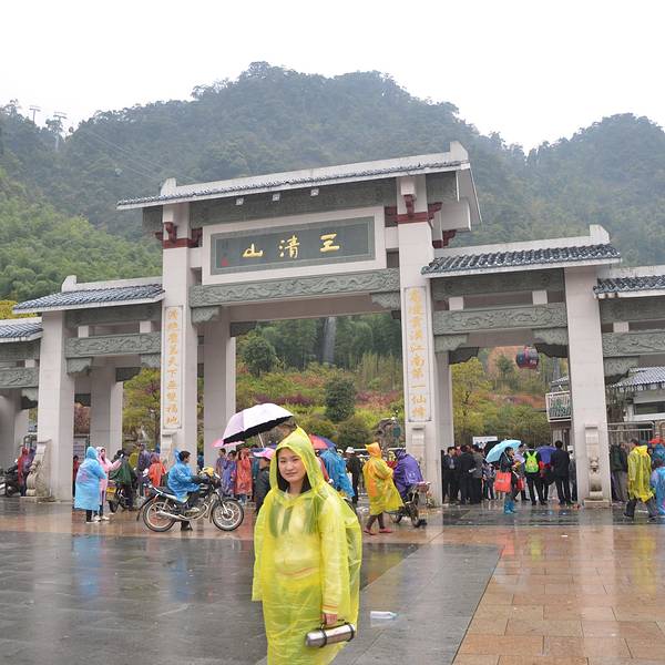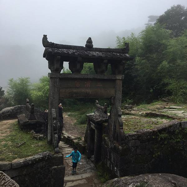 【景区看点】三清山跟黄山类似,大部分风景全在山上,所以最好选择索道上山,我是从南部索道上的山,下了索道便被眼前的风景惊住了,眼前此景完全就是就是天然的水墨画嘛。但山峰间萦绕的雾气也为这次旅行增加了很大的不确定性因素,果然,仅仅游玩到西海岸的一半时便雾气笼罩,下起了小雨,能见度也就20米左右,所以很多景都看不到了,三清山景区的路标做的还是很不错的,指示明确,整个景区的游览路线是个大环线,比起黄山还是好爬多了一般体力的人可能需要两天的时间才能逛完,年轻人倒是一天足以建议体力不好的人走逆时针方向,这样有个特别陡的地方你就会是下山了。山上有雾气的时候,能看到景色的时间少之又少。因为大部分时间啥也看不到,整个旅程印象最深刻的地方是三清宫,配合着雾气跟蒙蒙细雨,感觉真的有仙气。喜欢殿前的那副对联,有闲云野鹤,仙风道骨的味道。路上还有一件趣事,因为能见度低很多人等在东方女神那等待一睹芳容,一群照快相的人号称能通过扫雾的办法照到东方女神……结果真有大爷大妈们上当,其实就是拿Photoshop建两个图层的,将第一层部分擦除,露出底层东方女神……我还真以为能有啥高精尖技术呢……在此警示后来人。