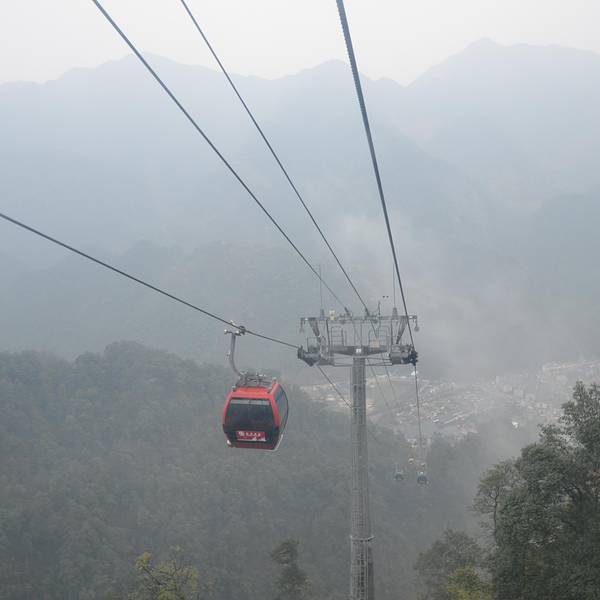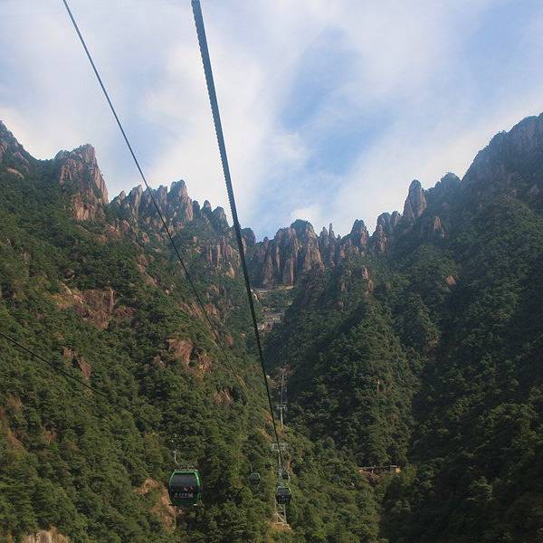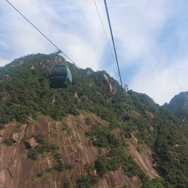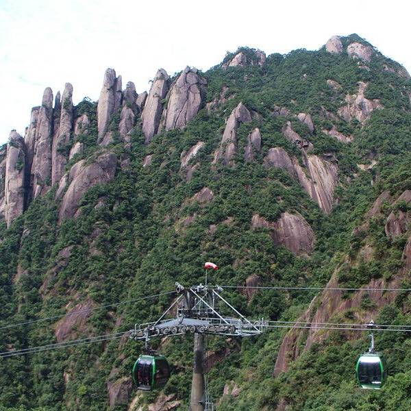 外双溪索道(南部索道):外双溪索道位于三清山南部外双溪服务区,开始于外双溪服务区,上行至梯云岭景区景观平台,全长2426米。每个车厢可以乘坐8人,8分钟即可到达三清山中心景区。