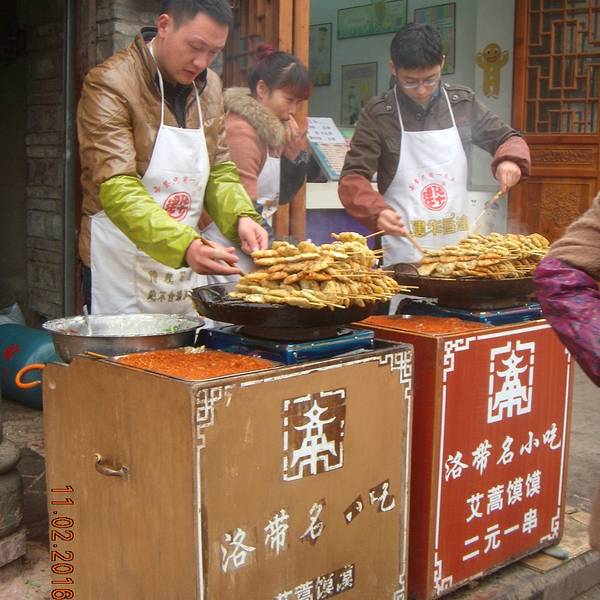 3、 小吃:各式四川小吃(担担面、伤心凉粉、三大炮等),特色串串(客家肉串、各类虫类串串等),艾蒿粑粑和豌豆饼都是当地特色,一定要尝尝哈;
