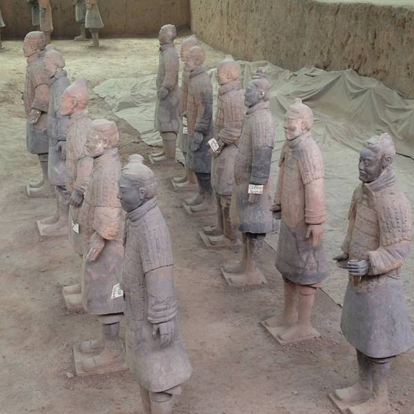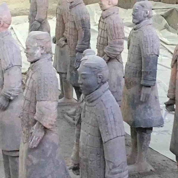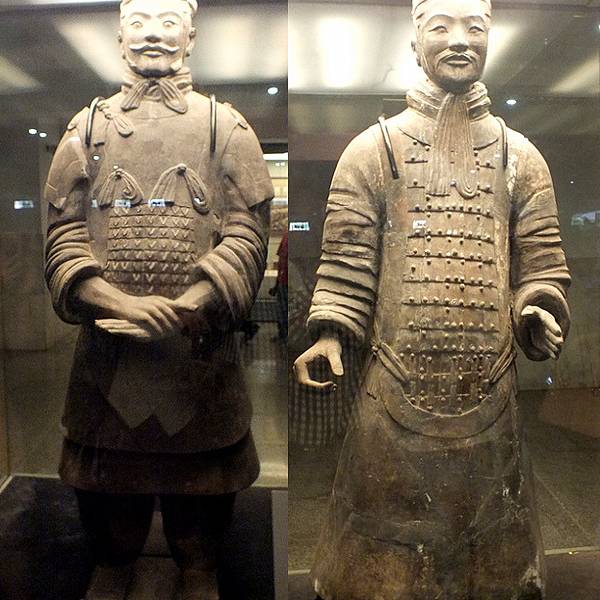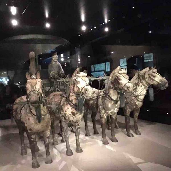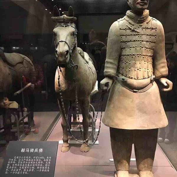 兵马俑是秦始皇的陪葬品,是按照真人的比例塑造而成,个个都是形态各,尤其是每个兵俑的面部表情都刻画的栩栩如生。目前兵马俑博物馆有三个坑,一号坑最大,也是最为壮观的一个以前总是在电视和书本上看到,这次亲眼所见真的优点被震撼到了,二号坑其次,三号坑最小。每个坑里都能看到各种军吏俑、车士俑、立射俑、跪射俑、武士俑、军吏俑、骑兵俑等。