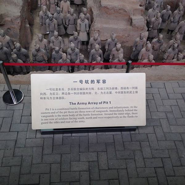 一号坑是三个坑中规模最大的一个坑,在每个坑道里面,每个俑摆放的都非常整齐,只是有些俑是没有头的,这个也没办法,毕竟已经过了2000多年了,而且在刚发现这个坑的时候,挖掘的技术还没有像现在那么发达,所以这些俑已经造成了很严重的损坏,能有那么多已经被修复的,实属不易。而最大的魅力,就是“千人千面”,这也是秦陵兵马俑的魅力之一,每个俑的样貌都是不一样的,可想而至,在制作兵马俑的时候,所用到的人力,财力是多么的巨大。一号坑内也并不是完全被开发了,还有一大部分区域等待着科学家的勘察和修复。 在一号坑的后排区域,有很多现代化的仪器,这些仪器就是用来修复兵马俑的,最大可能的恢复更多的兵马俑,每个待修复的佣身上都贴着一个号码牌来表示自己的“身份”。二号坑没有一号坑那么明亮,不过从布局来看,如同一个战场,经介绍,二号坑的布局是根据秦朝的军阵来建造的,一共分为4个区域,每个区域里面都有着自己的专属兵种,秦始皇征战的时候,就是根据这个布阵,才能够完成统一的。不过二号坑修复完成的兵马俑不多,在坑里面,大多都是一些俑的碎片,也让游客们了解到了修复的困难性。二号坑的侧面有兵马俑的陈列窗的,这里陈列出来的都是修复的比较完成的兵马俑,所展示出来的是4种兵种:跪射俑、立射俑、骑兵俑和军吏佣。游客们可以在这里近距离的欣赏兵马俑,真的是栩栩如生,也感慨2000多年前的技术。三号坑也是三个坑中面积最小的一个坑,三号坑成“凹”字型,是军阵的指挥系统的象征。在三号坑里面可以看到的兵马俑数量也不是很多,有些兵俑的身体虽然已经修复完成,不过却是没有头部的。兵马俑博物馆内,还有一个陈列馆, 陈列馆内分为几个区域的。 第一区域主要是描述兵马俑的发现和修复的过程。这个过程是相当繁琐的,周期也是很长的,也难怪到现在只修复了部分的兵马俑。很多出土后的陶俑并不是现在我们看到的这个样子,更多的是残破不堪的样子。好几个无法修复完整,但是大体轮廓没有改变的兵马俑摆放在陈列窗里面让大家更深入的了解修复的过程。第二个区域是罗马帝国文物特展,顾名思义,这里展示的都是古罗马的历史文物,让大家在了解秦代的同时,也能了解到罗马这座古老城市的历史文化。在整个陈列馆里面,最出名的就是铜车马展厅了,因为这里展示的有2辆秦朝时期的铜车马,一号铜车马是护卫一类人坐的铜车马,二号铜车马是妃子一类人坐的铜车马,在很多描述秦代的电影或者电视剧中,所坐的车马就是以2号铜车马为原型的。秦始皇兵马俑博物馆面积很大,而且历史意义巨大,看看一些说明就能看很久,有团队的导游还会讲述一些历史,听听历史也蛮不错,所以在这里参观很久,而且露天区域的植被面积也不错,走累了可以找个凳子坐坐,基本可以在里面参观4小时左右。 展开