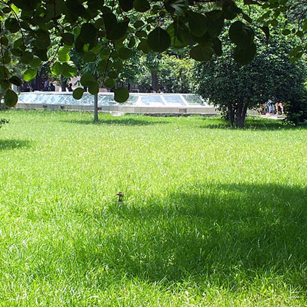 三个坑成品字形结构,中间是绿色的景观覆盖,草坪、合欢花一类的,庭院中一座类似塑料大棚似的玻璃房,玻璃下面长满绿色苔藓一类的植物,那是4号坑,只能隔着玻璃看,进不去里面。