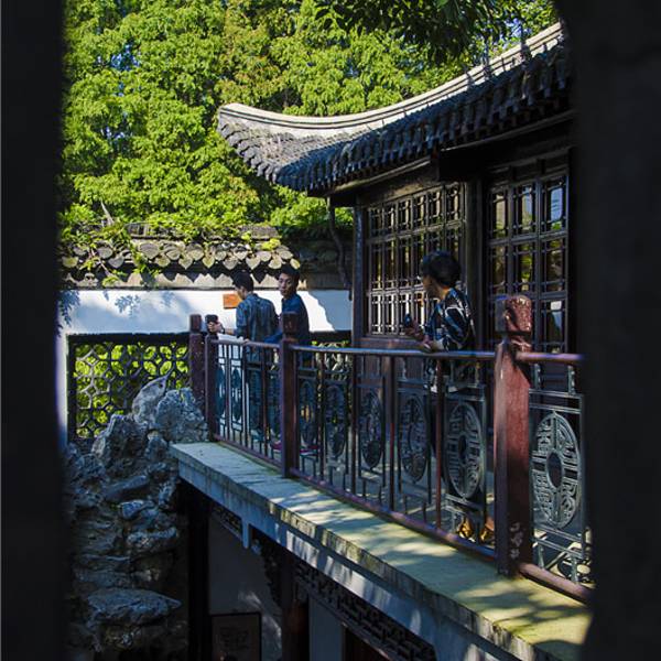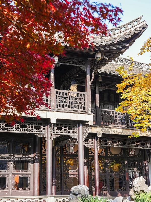 2️⃣ 园内的复道回廊很有特色,分上下两层,四通八达,在中式园林中还是第一次看到,在二楼的回廊上看整个花园,别有情趣,园子也更有立体感。