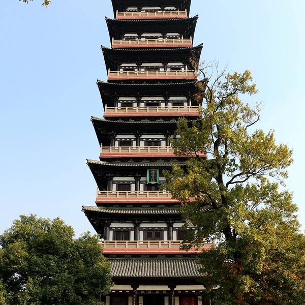 大明寺里有座九层的栖灵塔,如果想俯瞰扬州这里是不二之选。原来的栖灵塔不在这,现在看到的栖灵塔是由于原貌被火焚毁后在重新选址修建的。塔高9层,总高度70米。大明寺【栖灵塔登高俯景】