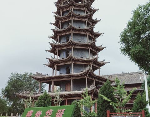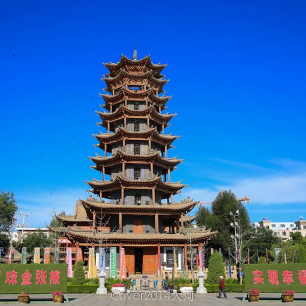 木塔寺位于甘肃省張掖市中心广场,为木结构砖混结构,塔高七层,内有钢梯逐层到达塔顶层