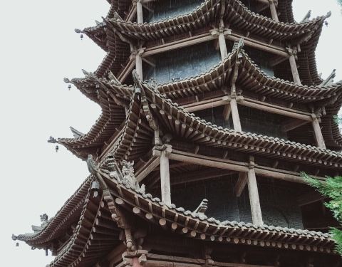 雨天随便溜溜,发现了木塔寺,木塔好高,石头和木结构,总共2个建筑,后一个是卖佛相关用品,门票是免费的,始建于北周,民国时期重建