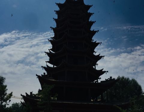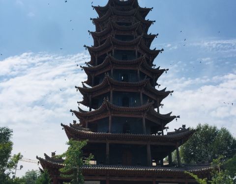 从大佛寺出来过马路就是了,挨着一个休闲广场,据说是张掖仅存的两座五行塔中的木塔。9层八面,顶层有口钟,据说撞此钟四野皆闻,属于甘州八景之一的木楼疏钟。很多燕子在屋檐筑巢,一走近很多燕子飞出来。据说夜...