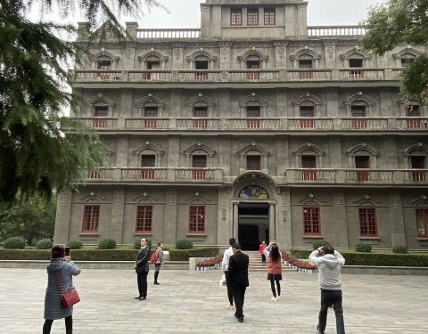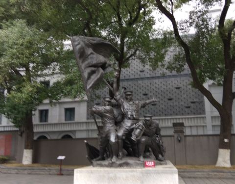 南昌八一起义纪念馆位于老城区中心,现由新馆和旧馆两处建筑组成,旧馆是南昌起义指挥部旧址,新馆是近年扩建的陈列大楼。这里也是南昌游客必到的红色景点之一。纪念馆凭身份证领票即可进馆参观,因此周末和节假日可能会遇到排队和领不到票的情况。进入馆区,首先引入眼帘的是铜雕,它的右侧的灰色建筑是旧馆,南昌起义总指挥部旧址,铜雕正后方为陈列大楼。整体面积不大,步行游览即可。首先前往新馆的陈列大楼参观,序厅正中有一座名为“石破天惊”的雕塑,一只有力的大手从崩裂的石块中伸出,紧扣着汉阳造步枪的扳机,其中一块石块上刻着起义打响的时刻。这尊雕塑也是纪念馆的标志,许多游人在此留影。纪念馆的基本陈列分为危难中奋起、伟大的决策、南征下广东、转战上井冈等部分,顺着参观路线依次游览即可。馆内大约每半小时会有一场免费讲解,跟着讲解员你会对那段历史有更清晰的了解。馆内陈列的展品从当年起义用的刀枪弹药到衣物、望远镜等,另外值得一提的是,展馆内有不少多媒体模型,蜡像和雕塑在声光的配合下格外逼真,枪炮声、冲锋声回响在耳畔,攻打敌人指挥部、五万人欢庆胜利等场面栩栩如生。从陈列馆出来,继续参观旁边的八一起义总指挥部旧址,这是一座五层的灰色大楼,也就是原来的江西大旅社。如果你翻开历史课本,一定能在南昌起义这一章找到这幢中西合璧的回形建筑的图片。1927年7月下旬,起义部队到南昌,包租下这间旅舍作为起义指挥中心。如今里面按当年起义时的原样布置供游人参观,入口处的石碑上“军旗升起的地方”,点名了这里的历史意义。在此可以看到诸如缴获的战利品、乃至根据旅社老工人的回忆复原的餐厅、客房等等,还展出着一些起义时使用过的原物