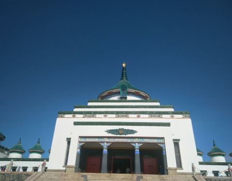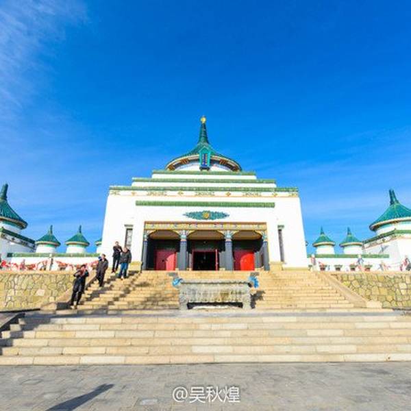 这是中国唯一的祭祀成吉思汗的庙宇。建筑很有特色,漂亮,大气。站在罕山顶可以看到乌兰浩特全景这是中国唯一的祭祀成吉思汗的庙宇。建筑很有特色,漂亮,大气。站在罕山顶可以看到乌兰浩特全景。我们是初一去的,还有意外收获,免门票(十五也可以),还有祭祀仪式。