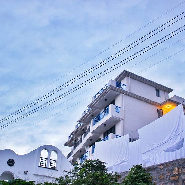 这是一家位于嵊泗本岛泗礁岛的民宿。整体蓝白的地中海风格,与整个小岛相得益彰。民宿全新装修,七月营业,所以民宿整体环境卫生都很不错。地理位置相对小岛中心还是较偏僻。
