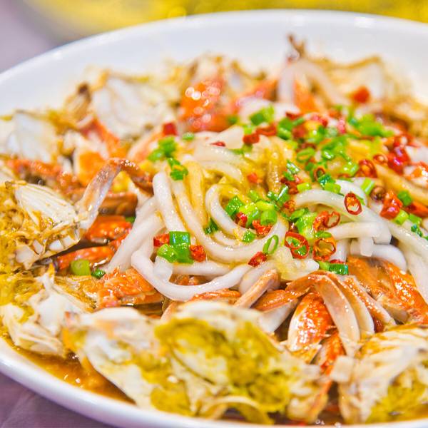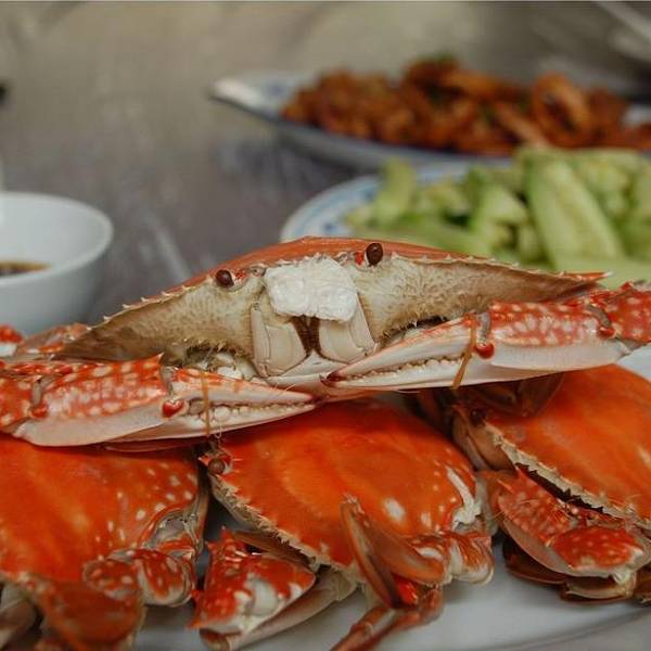 △清蒸梭子蟹。金秋时节的梭子蟹是枸杞岛上不可错过的一道美味。