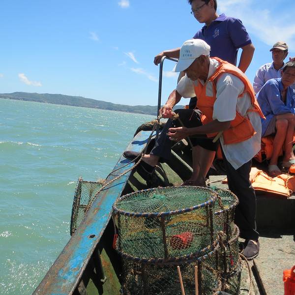 出海捕鱼一个小时,所打捞的食材都归我们!随船出海捕鱼,乘风破浪勤劳的妇人们在织网出海捕鱼一个小时后的收获,捕上一只八爪鱼当地俗称老虎鱼,因为这种鱼的纹路像极了老虎的皮肤满载而归的战利品...捕鱼过后,已是傍晚时分,我们拿着所捕捞的食材到镇上饭店加工。这些便是我们晚餐的食物了!
