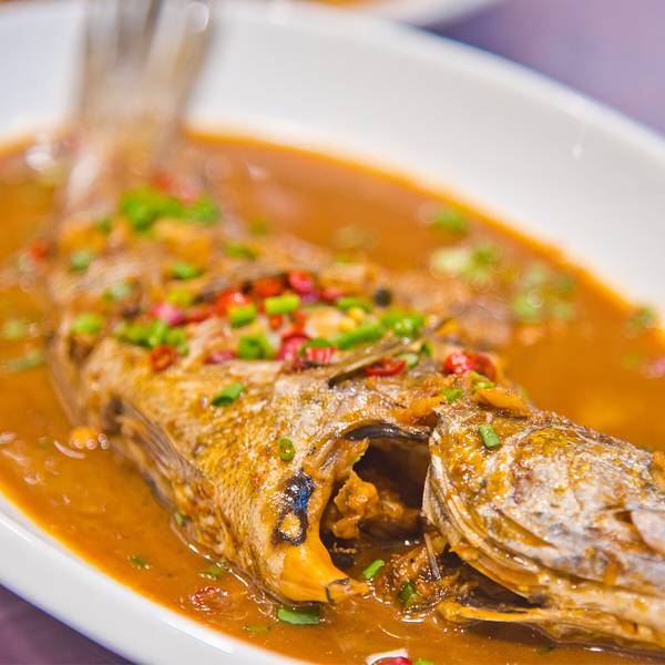 △大黄鱼。肉质鲜嫩,营养丰富,可红烧、可清炖、可生炒,雪菜黄鱼汤是当地的名菜。