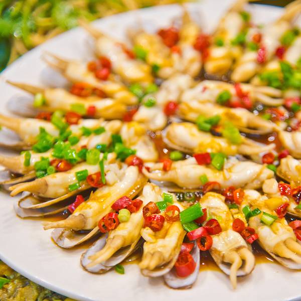 △辣炒蛏子。肉质肥厚鲜美爽脆,香气浓郁。还有铁板、葱油、蒜蓉多种做法。