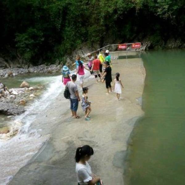 主要是在洞内游玩,洞内很长一截,还要经过地府再下到暗河乘船,挺凉快的。建议将门票捡好,5-6人一路,坐船方便。管理人员较少,沿路没啥执勤的人,人少的话有些怕怕!从洞内出来其实可以直接上岸,沿着河边到对岸,再往上游走,比较短的一截路就到耍水区。但通常划船的人会极力推荐你买10元/人的竹筏票,逆水而上,玩过竹筏的就没必要了。刚出洞时有人在岸上拍照,出园就已经塑封好,10元一张,自愿购买。