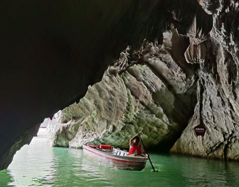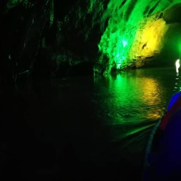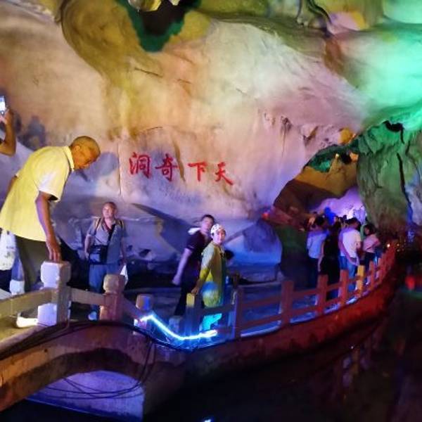 主要是在洞内游玩,洞内很长一截,还要经过地府再下到暗河乘船,挺凉快的。建议将门票捡好,5-6人一路,坐船方便。管理人员较少,沿路没啥执勤的人,人少的话有些怕怕!从洞内出来其实可以直接上岸,沿着河边到对...
