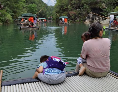 三大两小团购了39.9门票加暗河船票三张,溶洞挺大,有三层,带小朋友了解溶洞值得看。暗河乘船景致也很好,出了溶洞已经中午,60元包了一条竹筏,自己划船当船夫,不限时间,体验感很强。在船上吃了点零食补给,...