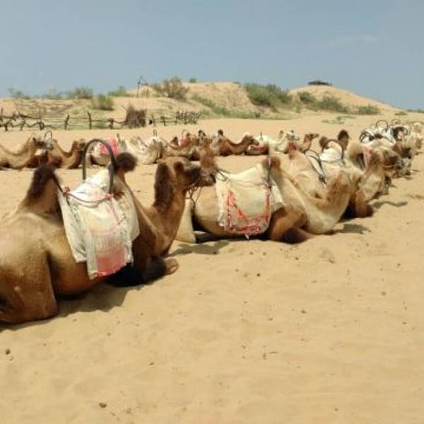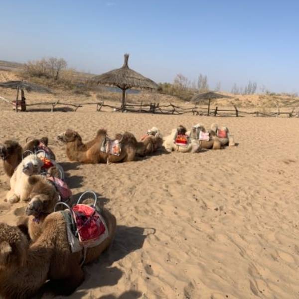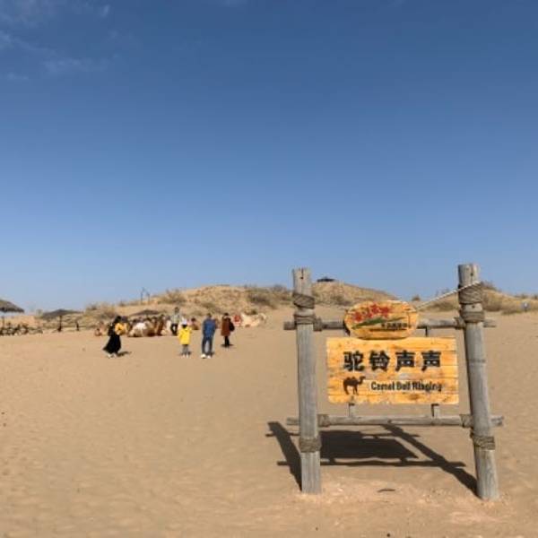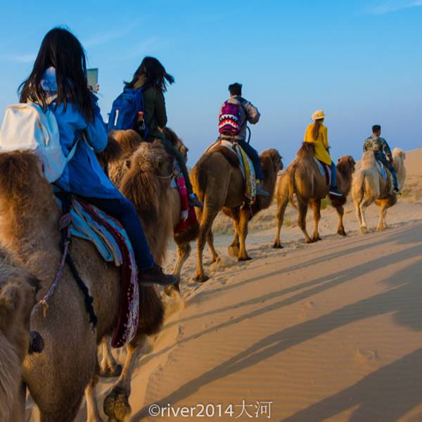 乘坐小船,缓缓地在芦苇荡里前行,水质清澈,环境幽静,路边的树叶已经变黄,芦苇也已经剩下了干枯的芦花,典型的北国深秋风光。到达沙漠里以后还可以骑骆驼,这是人生中第一次骑骆驼,也非常难忘。骆驼骑上去并没有那么舒服,特别是下坡的时候,骆驼步子很大,颠簸的厉害,不过这个时间段正好赶上了日落,欣赏到绝美的大漠日落景观,前方就是一条河,真正的长河落日圆。