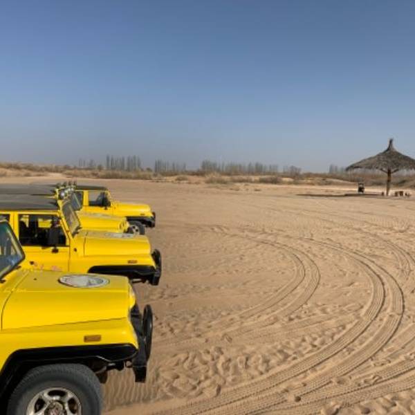 我们从进入景区的第一个项目,沙漠越野车开始体验,如果人多的话,可以乘坐大型的冲锋车,而我们人少,坐上了一辆越野车,车开到一个高高的沙丘上,然后近乎跌落的速度冲了下来,每个人都被失重的感觉刺激到大喊大叫,非常刺激。需要提醒的是,越野车开的速度非常快,一定要扣好安全带,而且抓好把手,相机什么的就别拿出来了,免得摔坏。