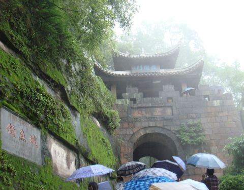钓鱼城景区的最大魅力,是它的战争遗迹。改变中国历史和欧洲历史进程,而载入史册重庆合川钓鱼城,南宋时期坚守36年抗击元军,炮击蒙古大汗蒙哥至其毙亡。改变中国历史和欧洲历史进程,而载入史册。 去钓鱼城时,正好下着小雨,淅淅沥沥……的。上山下山的石板路台阶,很是湿滑。 钓鱼城景区的...重庆合川钓鱼城,南宋时期坚守36年抗击元军,炮击蒙古大汗蒙哥至其毙亡。改变中国历史和欧洲历史进程,而载入史册。 去钓鱼城时,正好下着小雨,淅淅沥沥……的。上山下山的石板路台阶,很是湿滑。 钓鱼城景区的最大魅力,是它的战争遗迹。曾经的军工厂,操练场,跑马大道,嘉陵江边的古炮台,古城墙,还有重修后的当年的县衙,仿佛在诉说着,当年那场持续了36年的守城保卫战! 站在钓鱼台古城墙上,从城墙的垛口向外望去,合川山水一片迷朦,城墙下涛涛不息的嘉陵江水, 大江奔流,千古英雄,无觅处…… 展开