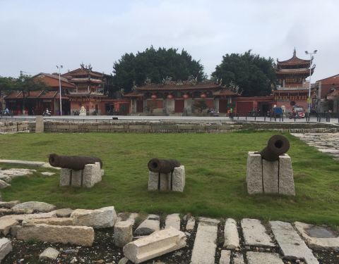 竟然是一只龟 风调雨顺 后面两边有亭 亭上有碑文 门口大门对面是城墙 对面是个书店 旁边是承正...正门进去 竟然是一只龟 风调雨顺 后面两边有亭 亭上有碑文 门口大门对面是城墙 对面是个书店 旁边是承正堂 右手边是林记绿豆饼 穿穿过去就是聚宝街 第一次看妈祖庙 好多台湾人捐赠的纪念碑