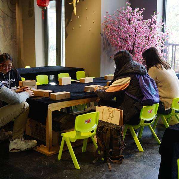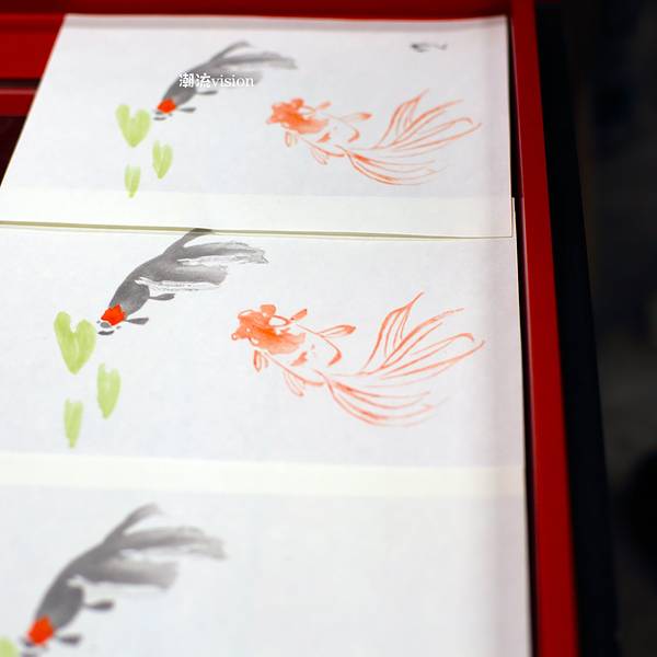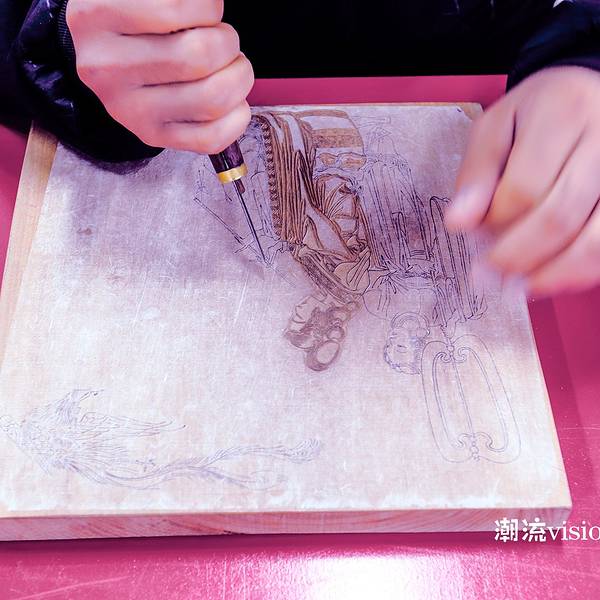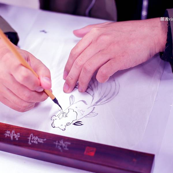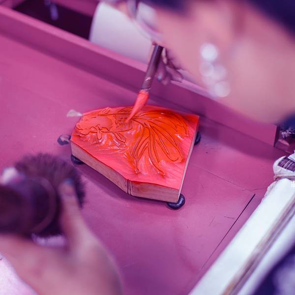 我们体验的是最后一道工序,将湿润的宣纸放在梨木的雕版上,用马尾刷压印,最终成品。是最简单的一道工序,却很有讲究,我们总共有10个人,虽然是同一个作品,但由于上水、上色的程度不同,刷出来的作品也呈现出了不同的风格。 展开