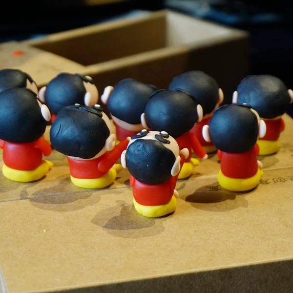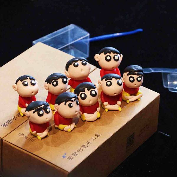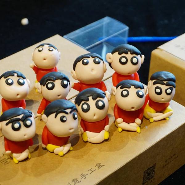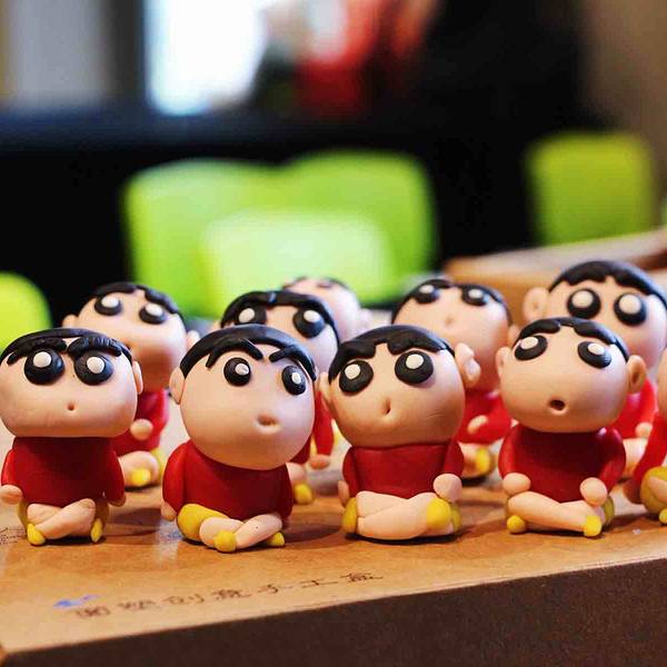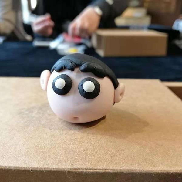 随后,取一块黑色的面团,捏制小新的头发,小新的寸头很好展示,黑色的面团按压成圆形的薄薄一片,贴在上一步捏好的头部上面就OK啦。下一步,为小新做一个大大的黑眼圈与白色的眼球,一定要对称大小哦,不然就大小眼啦。还有耳朵,与头部要对应呢,我的小新就有一双大耳朵,被小伙伴们成为图图小新了。再次,为小新捏制身体,红色的面团圆台形的身体,小头与头部连接在一起,大头部分与黄裤衩链接。黄裤衩先搓成圆柱,将两头并在一起成为一个U字型就是一个短裤啦。最后,为小新加上小腿、手臂,取粉色与红色面团捏成水滴形,放在短裤前面与身体两侧。再取一点点面团为小新添上小圆手和鞋子,就完成整个制作了。剩了一点点面团,可以根据自己喜好制作其他的作品呀~手工体验盒中还有小塑料盒可以装作品哦。小新憨萌可掬,其实,我们的生活中与传统文化息息相关,传统文化也在吸收当下年轻人喜爱的主题,大家与非遗之间一直很近。嗯~展示一下团队作品,能猜出我的是哪个么:下次再有机会再去和老师学习其他好玩的面塑呢~哈哈哈哈哈哈 展开
