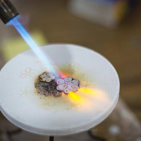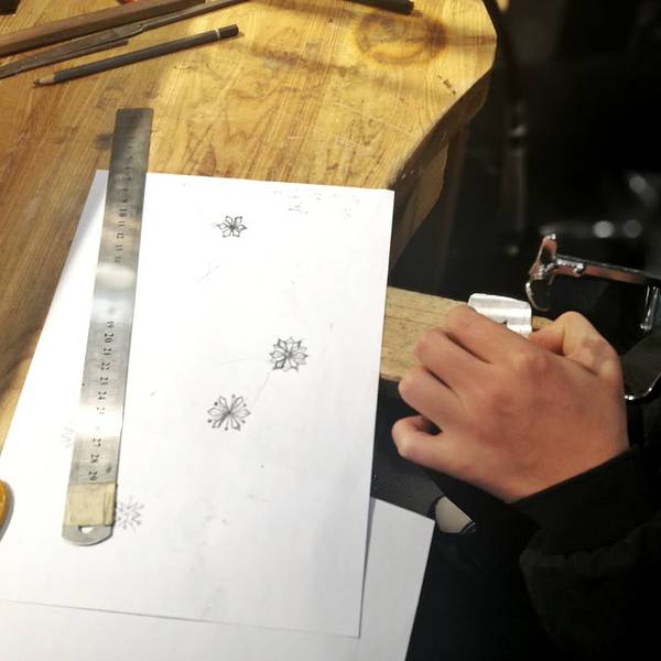 到了一金学社,老师给准备了笔纸,先把想法画下来。关于吊坠的造型想了很久,最后决定做个雪花,但雪花类型也有很多种,有复杂的,还有简单的,最后决定不为难自己,把雪花造型简化了!画好后,给老师看了下,觉得可行便拿出一块银质材料让我在上面画出形状,之后按着线条用锯切割。在用工具之前,老师都会亲自示范。锯切银质的锯条非常细,使用时需要掌握技巧,不然很容易断,我就弄断了两根才把吊坠的形给切出来(感觉对不起老师T T)。形出来了之后,就是用锉刀修饰细节了,这很考验耐力。我自己修完后,觉得差不多了,然后老师又帮我进一步修饰。之后便帮我焊了一个小环,可以挂链子,焊接完就是清洗,这些步骤需要用到火,都是老师动手帮忙,我只能在一边看一边拍视频了。洗完之后并还没有完工,老师又帮我再深入修饰、磨削,并用工具在我的吊坠上划出了脊,让我的吊坠看起来更有层次感!感觉老师就是个追求完美的人,一点点地帮我改善,帮我做到极致。最后,出来的效果我也非常满意。整个体验过程花了一下午时间,我做到了天黑,这一过程非常享受,感觉内心很平静。做这种手工和做木工类似,但我感觉比木工还要难一点。不管做什么类型的手工,最重要的是享受过程,还要细心与耐得住,正所谓慢工出细活~