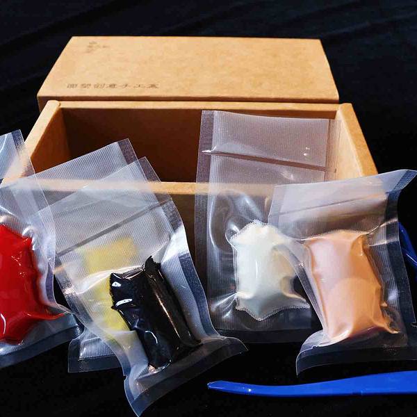 首先面塑艺术的特点是“一印、二捏、三镶、四滚”盒子里面也准备齐全了该有的工具,样样齐全。