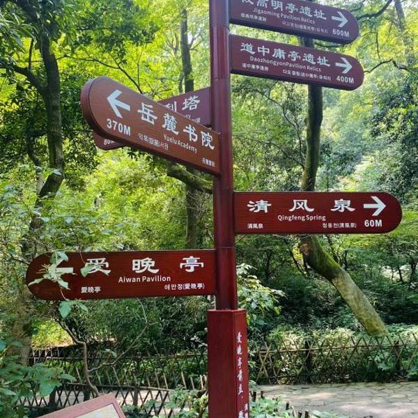 然后他有个牌写着爱晚亭的方向的门口出去。右边下去一直走搭个公交还是可以到了。岳麓书院一直走到最后岳麓书院一直走到最后。
