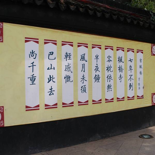 金骆驼 哦对了门票是20,学生证半价。¨姑苏城外寒山寺,夜半钟声到客船!等你去发现,说不定可以一语惊醒梦中人¨姑苏城外寒山寺,夜半钟声到客船!¨想必都听过这句耳熟能详的诗把,这个诗中所提到的正是苏州的寒山寺!传说曾经在寒山寺住过的两个分别名叫寒山、拾得的和尚分别是文殊、普贤的化身,老百姓把他们成为和合二...¨姑苏城外寒山寺,夜半钟声到客船!¨想必都听过这句耳熟能详的诗把,这个诗中所提到的正是苏州的寒山寺!传说曾经在寒山寺住过的两个分别名叫寒山、拾得的和尚分别是文殊、普贤的化身,老百姓把他们成为和合二仙,苏州人又叫他们喜神。听导游说,如果不是情侣或者夫妻不要一块去拜寒山和拾得!因为他们被称为和合二仙所以不能瞎拜!寒山寺还有这样的民间传说,说寒山寺的钟声不但有悠久的历史文化内涵,还有奇妙的功能,这功能可以用12个字概括“闻钟声,烦恼清,智慧长,菩提生”。寒山寺里有一个青铜钟是日本送的,本是一对另一只在日本,来到寒山寺大家也可以去敲这这个钟五块钱撞几下,因为我对这个不感兴趣,我就没有去撞!我听导游说绕塔绕塔是有功德利益的,因为塔也称浮屠,意译功德聚。代表了佛陀本身,所以绕塔是可以积功德累福报的。但是一定要顺时针,如果方向反了不仅没有功德,反而有很大很大的过失。所以大家千万不要弄错了!在塔的后面有放生池可以买鱼食去喂池中的锦鲤,一袋鱼食5块,它们都很可爱不怕人,买鱼食喂的可以摸它们,后面有个人造的莲池,我仿佛看到了夜华,是你吗?哈哈哈 在寒山寺你会看到很多的书法家写的《枫桥夜泊》各种笔体的书法,真心不错可以欣赏拍照留念!墙上还有很多比较有哲理的真理,抬头就会看到!等你去发现,说不定可以一语惊醒梦中人。哦对了门票是20,学生证半价。在寒山寺的入口守着大运河还可以坐船,船票需要格外买!给大家一点拍照的建议,可以早上去或者下午人多的时候先去里面逛逛都看完出来以后,不着急的时候可以在门口等人走了在去拍照,如果对拍照要求质量很高的,当然是在没人的时候拍了,拒绝游客照,总的来说寒山寺值得大家来逛逛,因为寺庙里面不太便于拍照,尤其不能拍佛陀,所以大家去的时候也不好去拍,就这样爱你!😘 展开