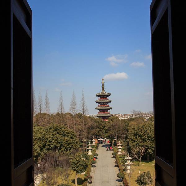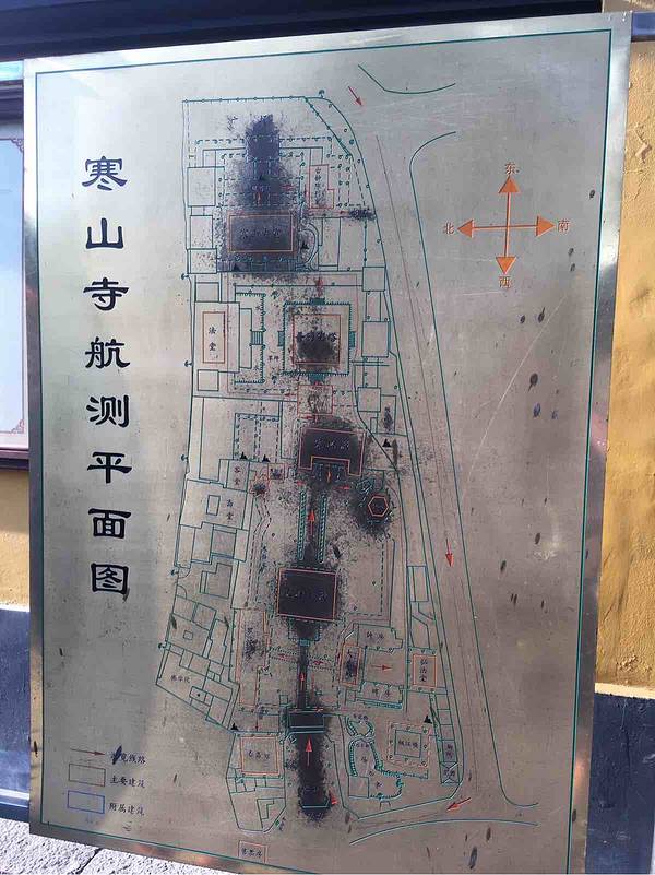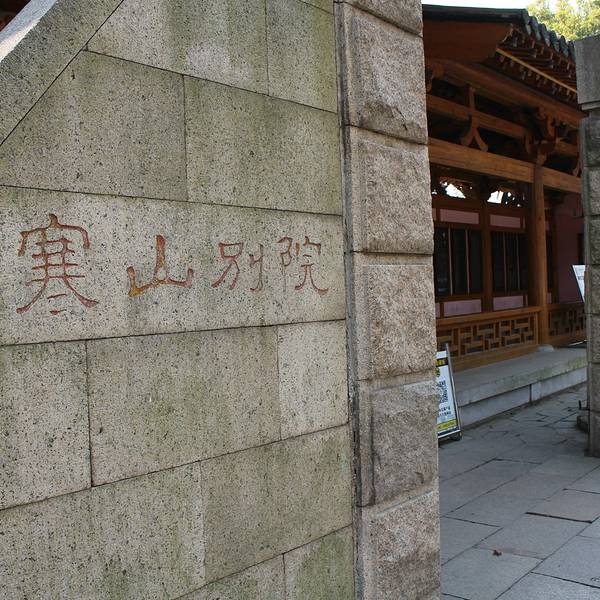 寒山出身官宦世家,从小就学习诗文,但因多次科举不中,后才遁入空门,但他的诗,却颇有才气。寒山的诗,不仅将山水景观融于佛教思想中,而且平易近人,通俗易懂,深受人们的喜爱,早在元代的时候,他的诗就已经传入了日本、朝鲜等地。寒山与拾得并称"寒拾",相传一个是文殊菩萨的化身,一个是普贤菩萨的化身。两人原本都是国清寺的厨僧,朝夕相处,感情日益亲密,并且两个常常一起吟诗作对,在文学上一同进步,百姓们珍视他们的情同手足的友谊,便把他俩推崇为和睦友爱的民间爱神,到清朝时,雍正皇帝特意封赐寒山为“和圣"、拾得为"合圣",两人的"和合二仙"从此名扬天下。因此寒山寺被更多人而熟知。寒山寺的重要景点。大雄宝殿是寒山寺正殿,雄峙台基之上。大殿面阔五间十八点五米,进深四间十四米,高十二点五米。寒拾殿位于藏经楼内,楼的屋脊上雕饰着《西游记》人物故事,是唐僧师徒自西天取得真经而归的形象,主题与藏经楼的含义十分贴切。寒山、拾得二人的塑像就立于殿中。普明宝塔,寒山寺1500年前开山有塔,名曰”妙利普明塔”。随着岁月流逝,塔几毁几建。自元代以来,已有600多年不见塔影。现在的普明宝塔于1996年重建。该塔为仿唐木结构楼阁式建筑,呈正方形,五层,高42.2米。塔刹为铜铸镀金,高9.6米,重12吨。钟楼位于藏经楼南侧,有一座六角形重檐亭阁。