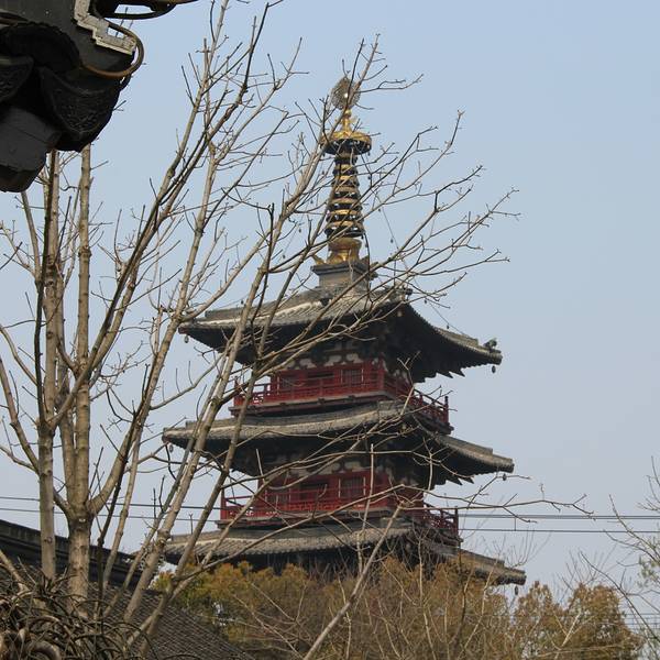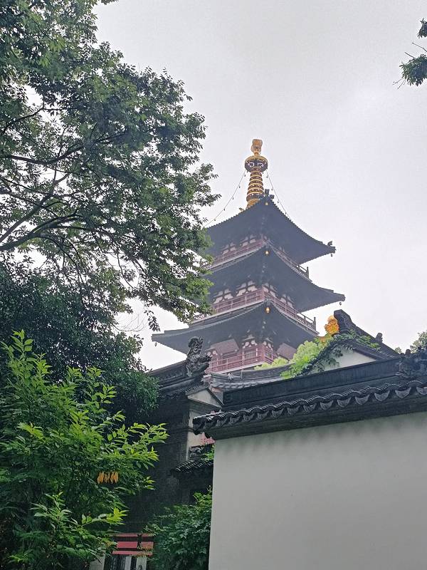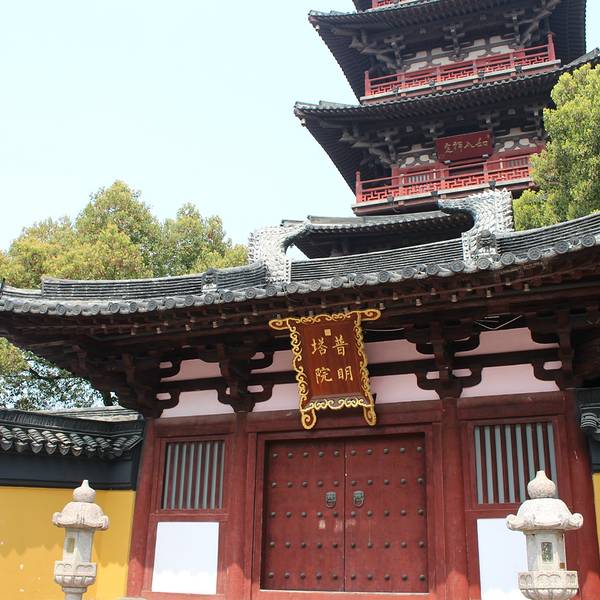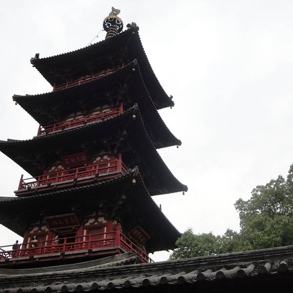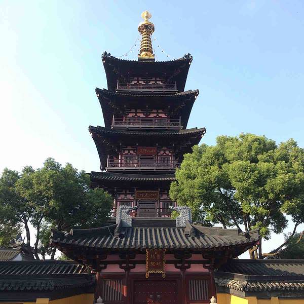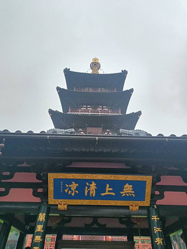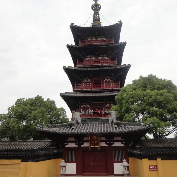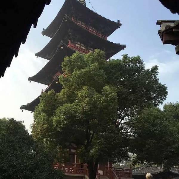 远远就看到了这个古香古色的门檐了,感觉有点像西塘古镇的那个正门。其实枫桥景区也是一个古镇,所以还是有一些相同之处的。景区外就能看到里面比较高的塔寺。来到寒山寺门口了,似曾相识的黄色背景墙。寒山寺的门票是20元每人次,学生票半价。可以直接在门口购买寒山寺和枫桥景区的门票。另外在景区的各个入口都有售票窗口。古香古色的路牌。有点江南亭台楼阁的味道。这就是普明塔院了,也就是寒山寺的别名。钟塔的石碑。钟塔里有个很大的钟,所谓的夜半钟声估计就是这个钟发出的声音。据说钟声可以祈求平安吉祥。另外每人十元可以敲三下。钟楼的门口是枫桥夜泊的石刻。在景区内随处可见这种比较小型的钟。寒山别院,看起来好高大上啊。钟楼全部是木质结构的,塔顶的构造精细复杂。tips: