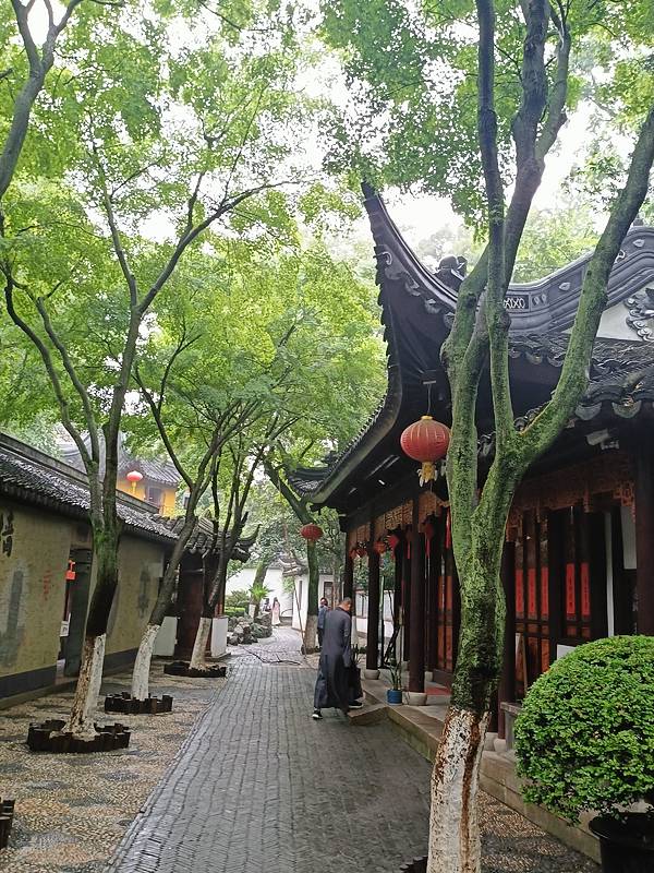 从枫桥景区出,沿着小路向前走,路上有指示,步行7~10分钟,就可达到寒山寺景区。